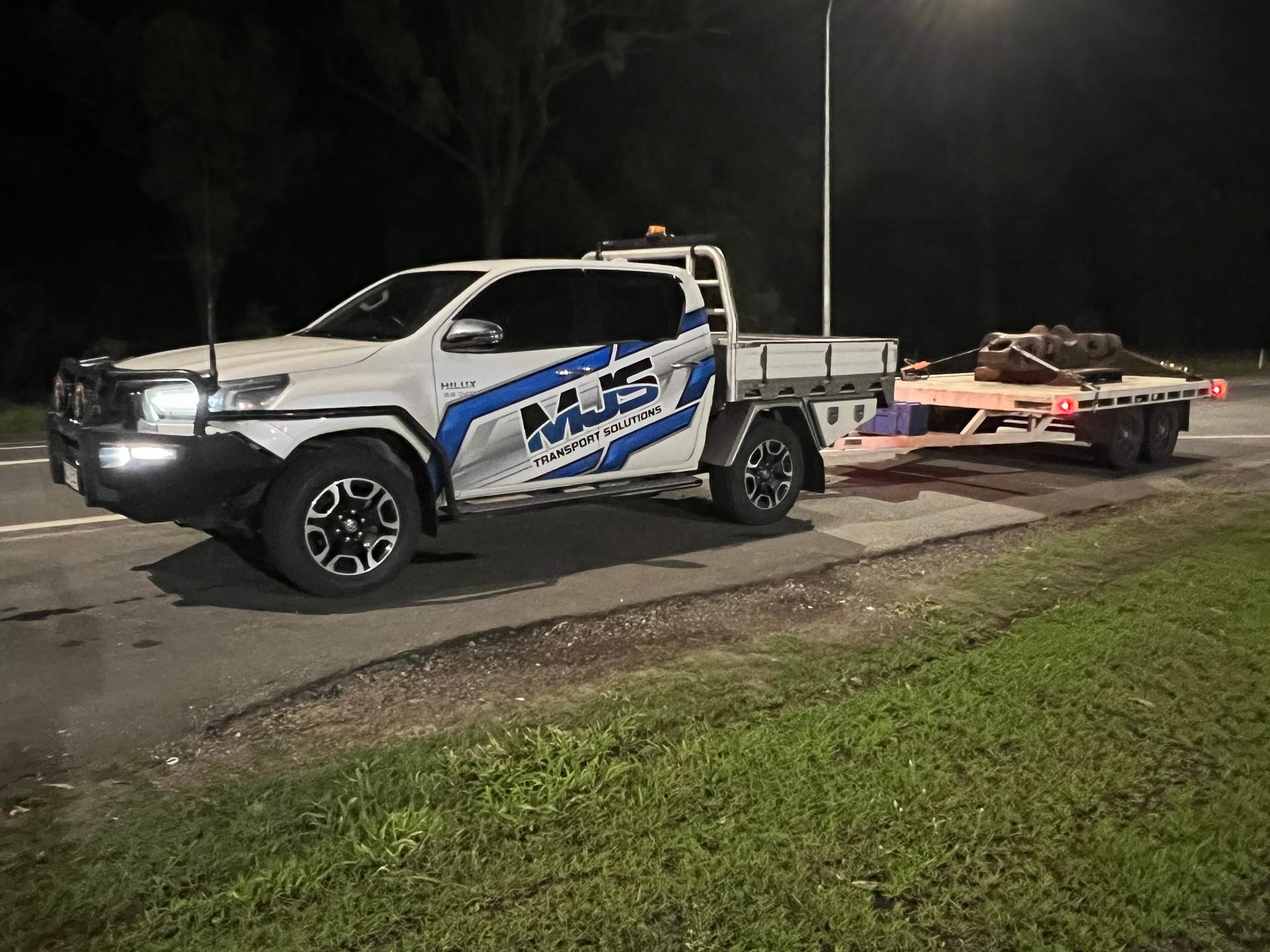 See MJS Transport conquer the terrain: our Bowen Basin equipment transport gallery awaits! Unleash the power of MJS Transport with our gallery, showcasing the diverse gear we move across the Bowen Basin. Witness mighty trucks hauling behemoths of steel, nimble utes sipping with essential parts and our team navigating any terrain with expert precision. Rest assured, your equipment, big or small, is in capable hands. Call us to discuss your equipment transport for mining needs.